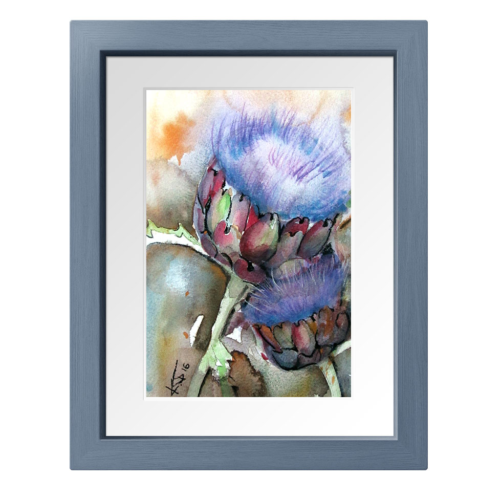 Die Blüten der Artischocke wurden von Kurt Suter im eigenen Garten geschnitten und im Atelier gemalt. Er versuchte vor allem, das einzigartige leuchtende Lilablau der Blüten der Heilpflanze wiederzugeben.