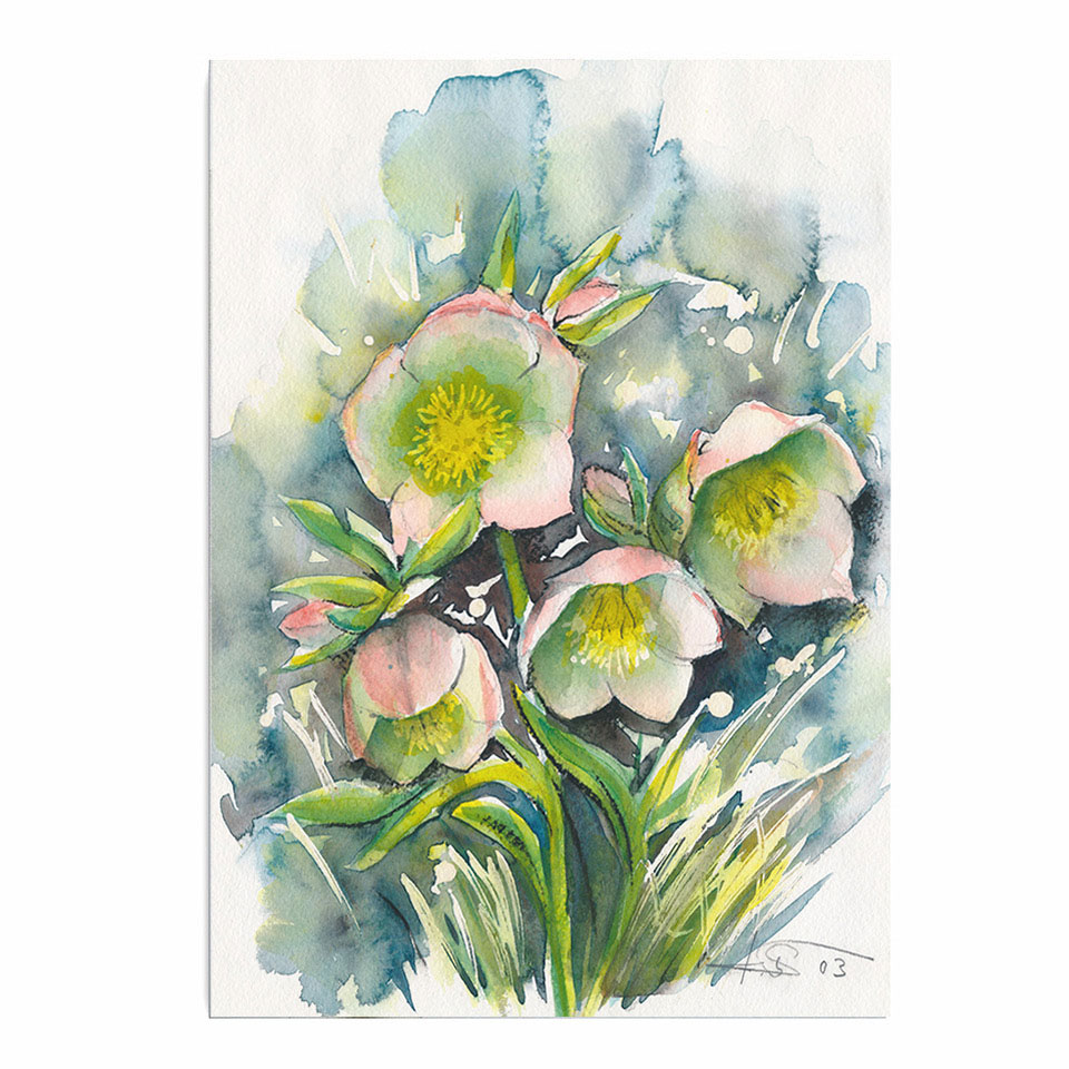 Die Christrose, auch Schneerose oder Schwarze Nieswurz genannt, gehört zu den Hahnenfussgewächsen. Sie ist immergrün und stets krautig. An geeigneten Plätzen wird sie bis zu 25 Jahre alt. Die Christrose wird auch als Weihnachtsrose bezeichnet, weshalb sie sich gut als Weihnachtskarte eignet.